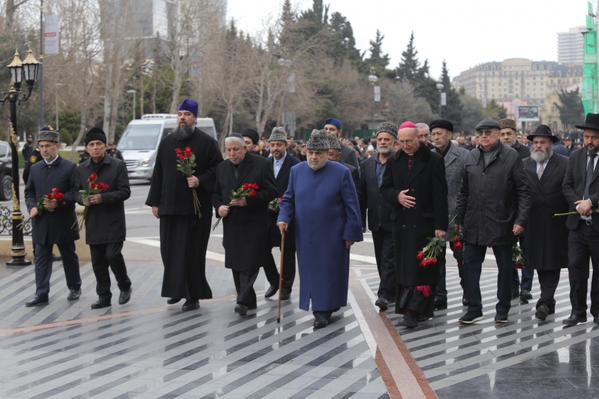 Xocalı soyqırımının 34-cü ildönümü ilə əlaqədar Qafqaz Müsəlmanları İdarəsinin sədri Şeyxülislam Allahşükür Paşazadə və Azərbaycandakı dini konfessiyaların rəhbərləri faciə qurbanlarının xatirəsinə Bakının Xətai rayonunda ucaldılmış «Ana fəryadı» abidəsini ziyarət ediblər.